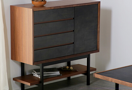 石目メラミンと天然木の組み合わせで既存のインテリアに「ちょい足し」で彩を加えるインテリアシリーズ