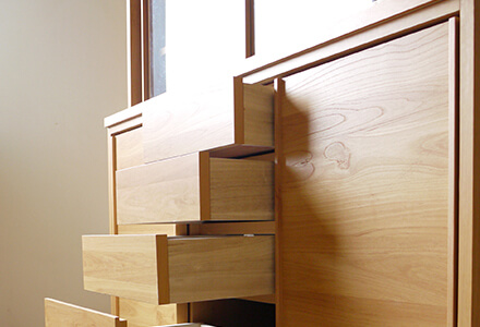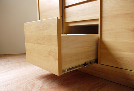 食器などを入れて重くなりがちな4段目の引き出しは、レール付きでスムーズな開閉