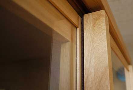 引き戸の召し合わせ部分(板同士が重なる部分)にはほこりなどの侵入を防ぐ隙間ブラシ付き